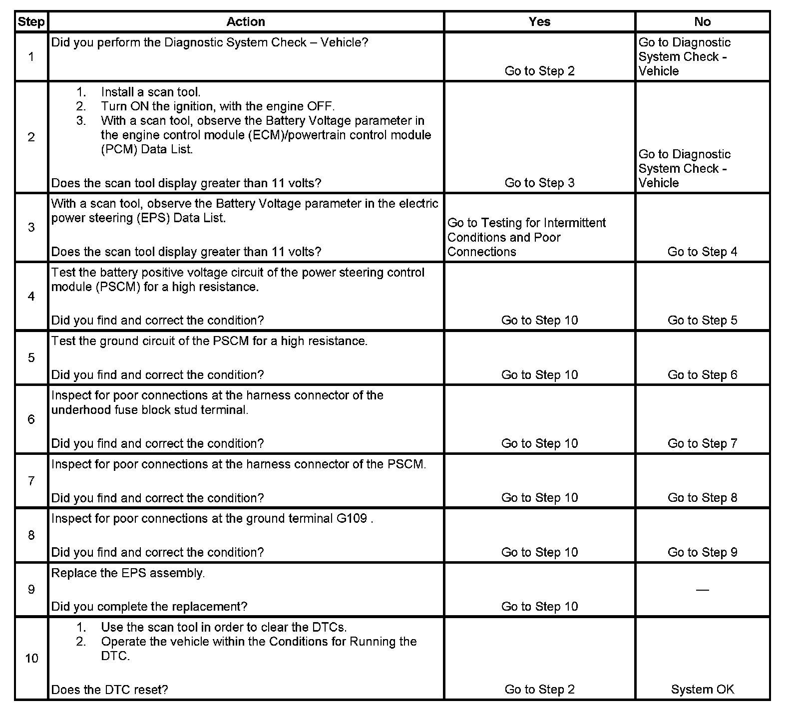 ^ A history DTC will clear after 100 consecutive ignition cycles with EPS system voltage greater than 11 volts.
