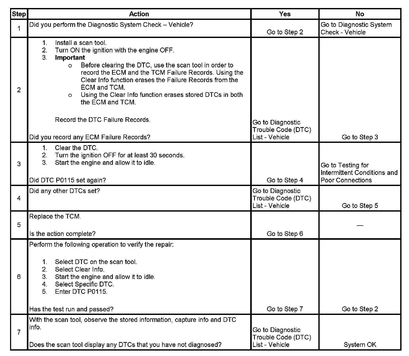 ^ The TCM stores DTC P0115 in TCM history.