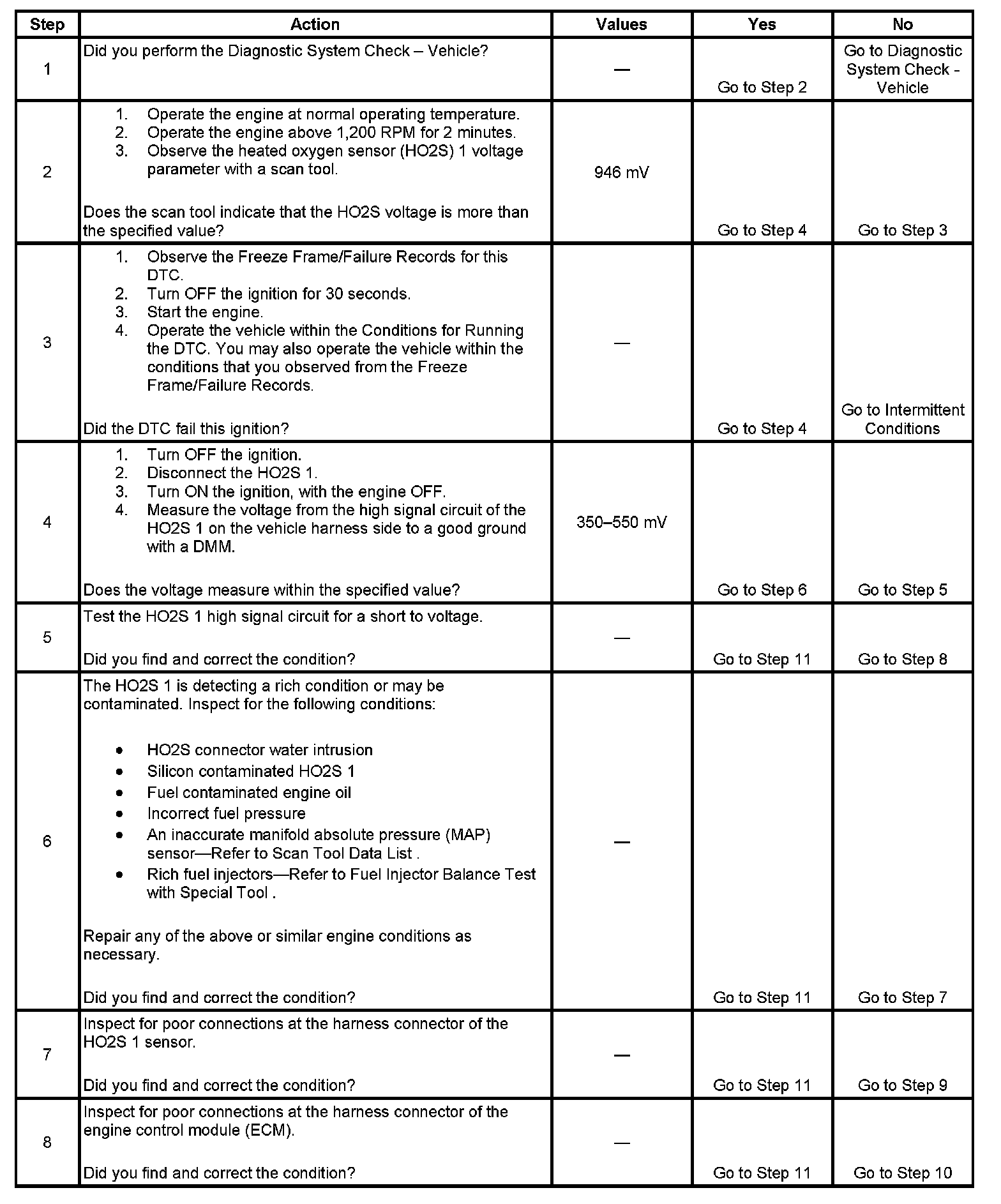 The ECM detects that the HO2S 1 parameter is more than 946 mV.