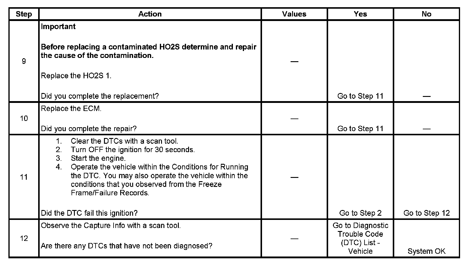 - A current DTC, Last Test Failed, clears when the diagnostic runs and passes.