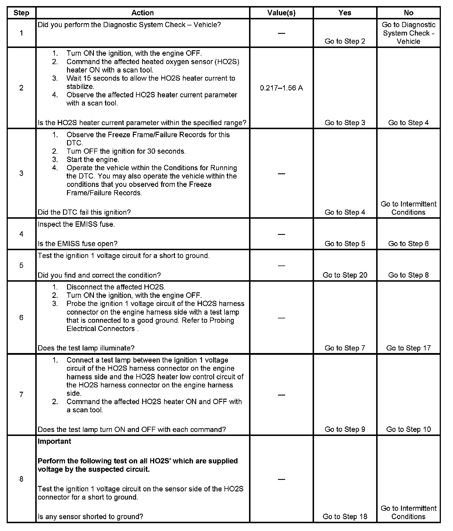 - The ECM detects that the affected HO2S heater current is less than 0.217 amps or more than 1.56 amps.