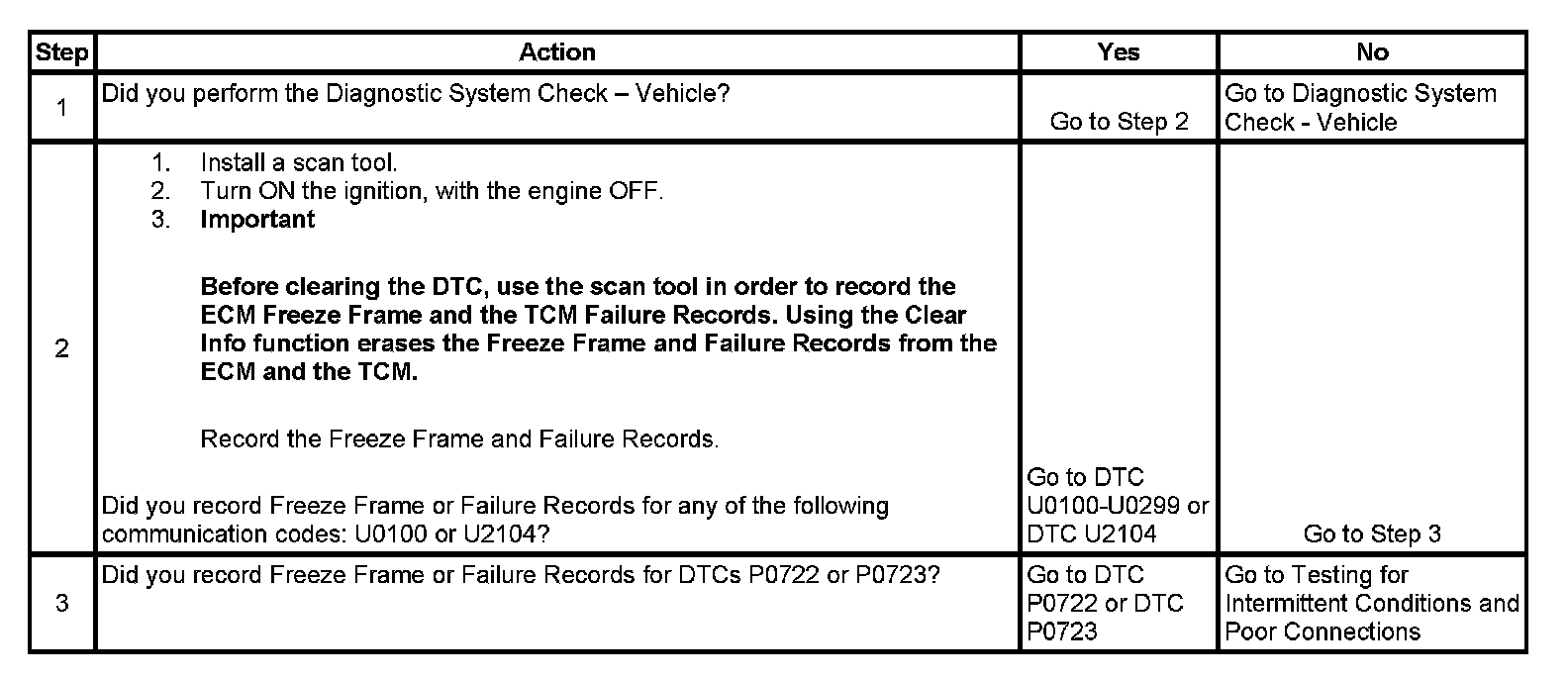 ^ If TCM DTCs P0722 or P0723 are set, diagnose these DTCs first.