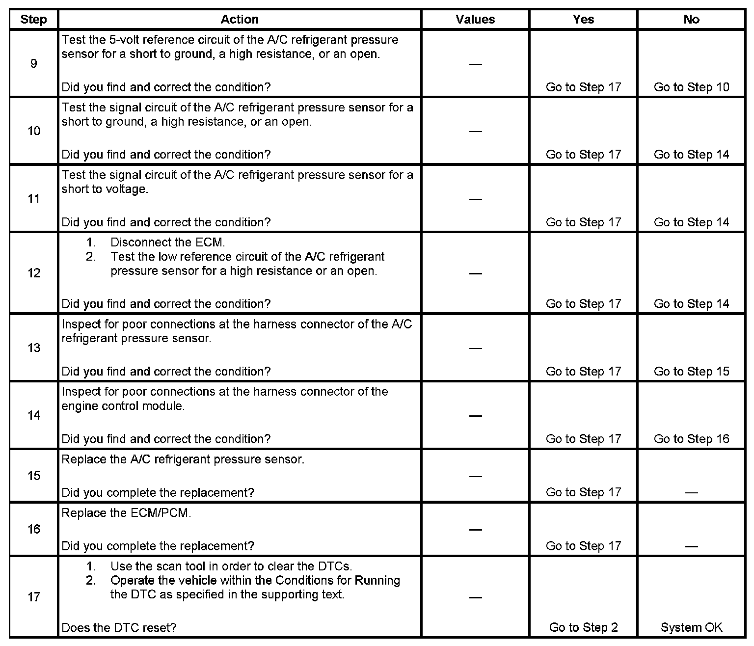 - The ECM/PCM detects that the A/C pressure is less than 0 psi (0.01 volts).