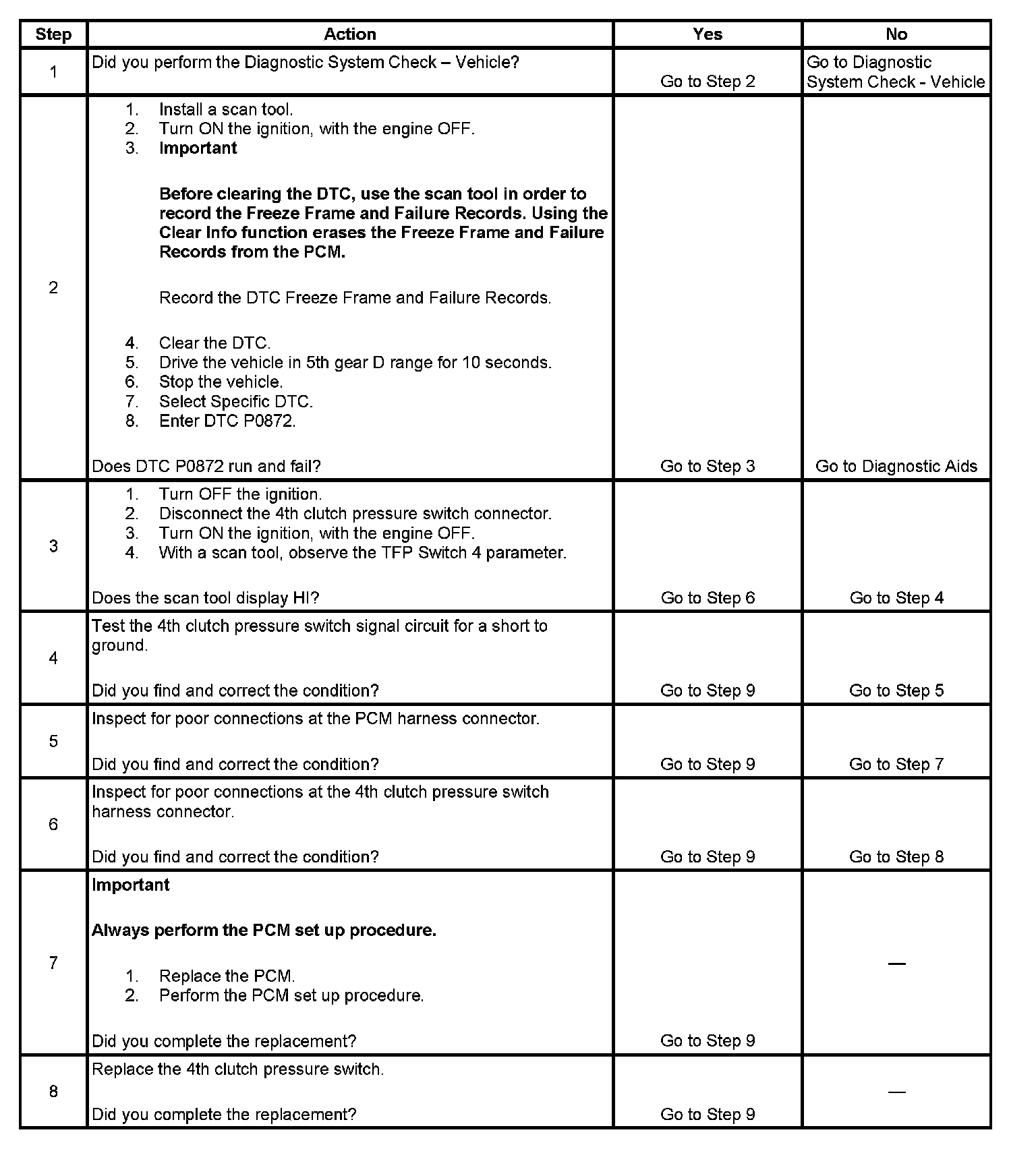 ^ The PCM stores DTC P0872 in PCM history.