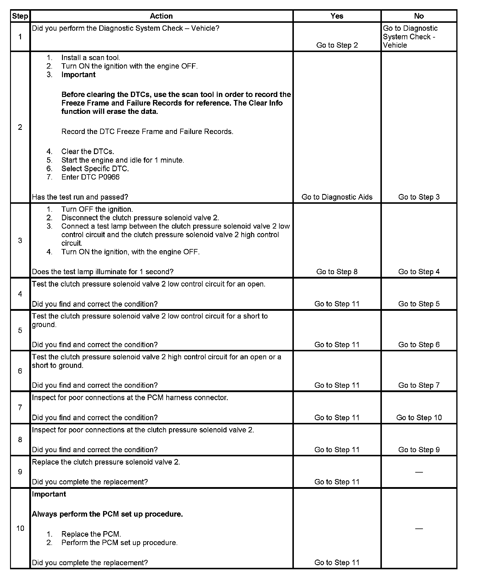 DTC P0966 Clutch Pressure Control (PC) Solenoid 2 Control Circuit Low Voltage