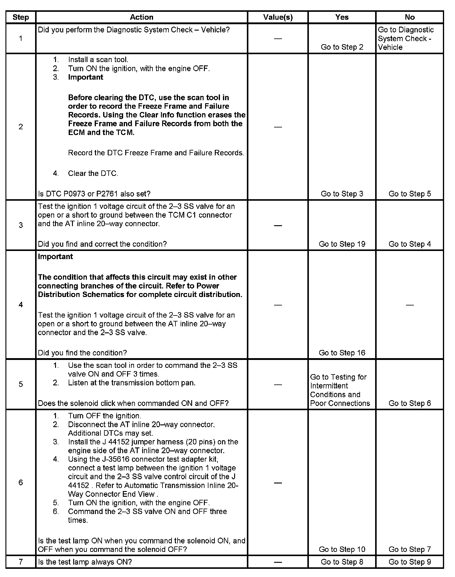DTC P0976 2-3 Shift Solenoid (SS) Control Circuit Low Voltage