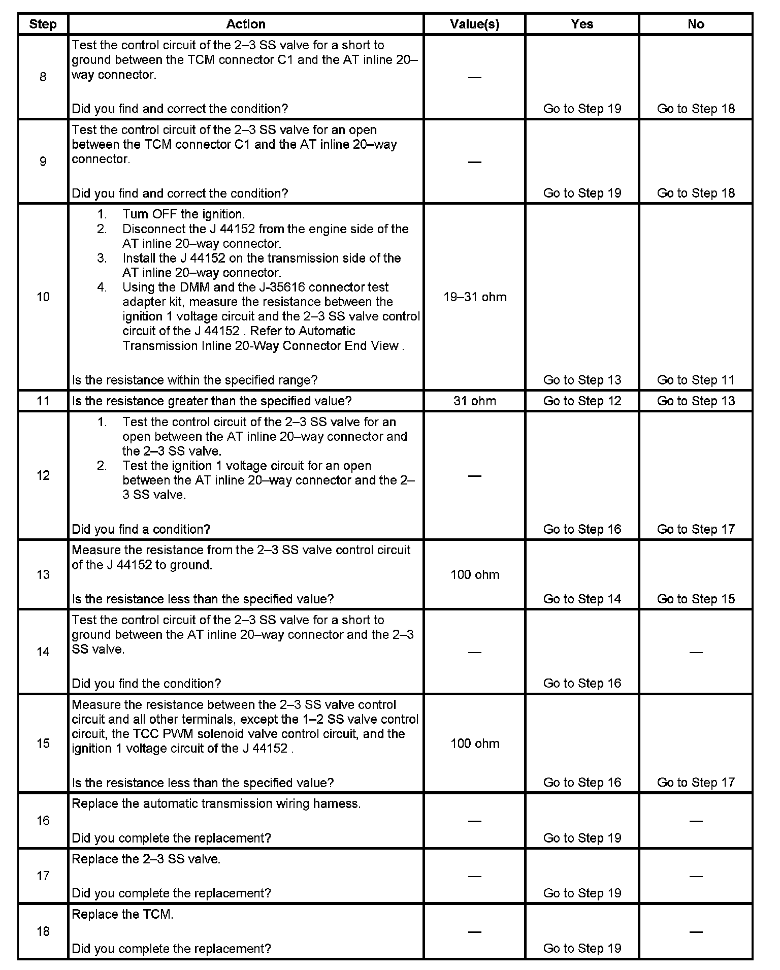 6. This step verifies the ability of the TCM to command the solenoid.