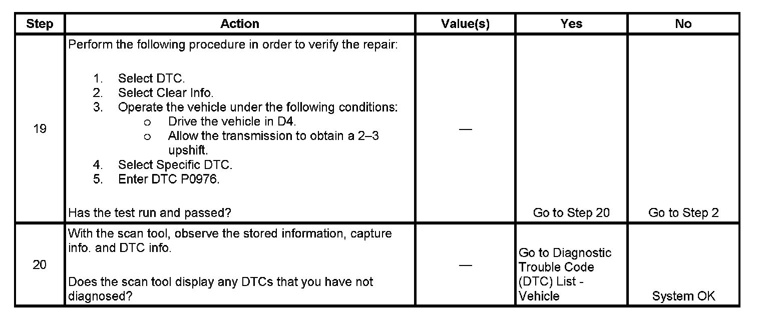 ^ The TCM stores DTC P0976 in TCM history.