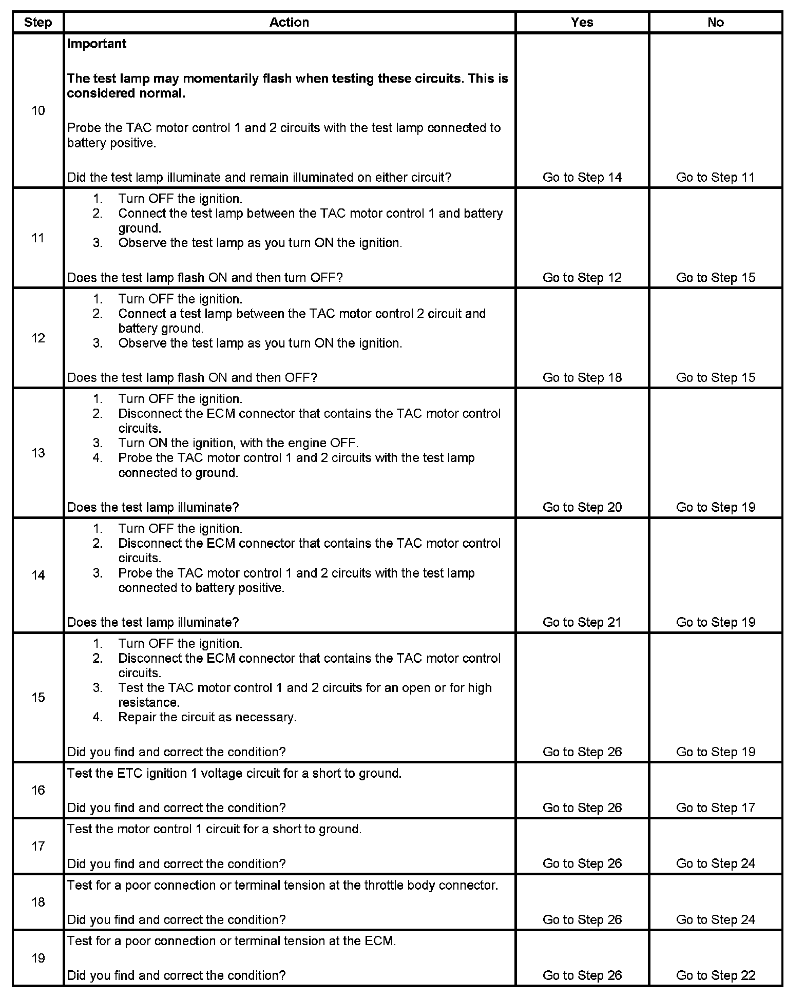 11. When the ignition is turned ON, the ECM operates the throttle control motor to verify the integrity of the system prior to start-up. This can be seen by the momentary flash of the test lamp as the ignition is turned ON.
