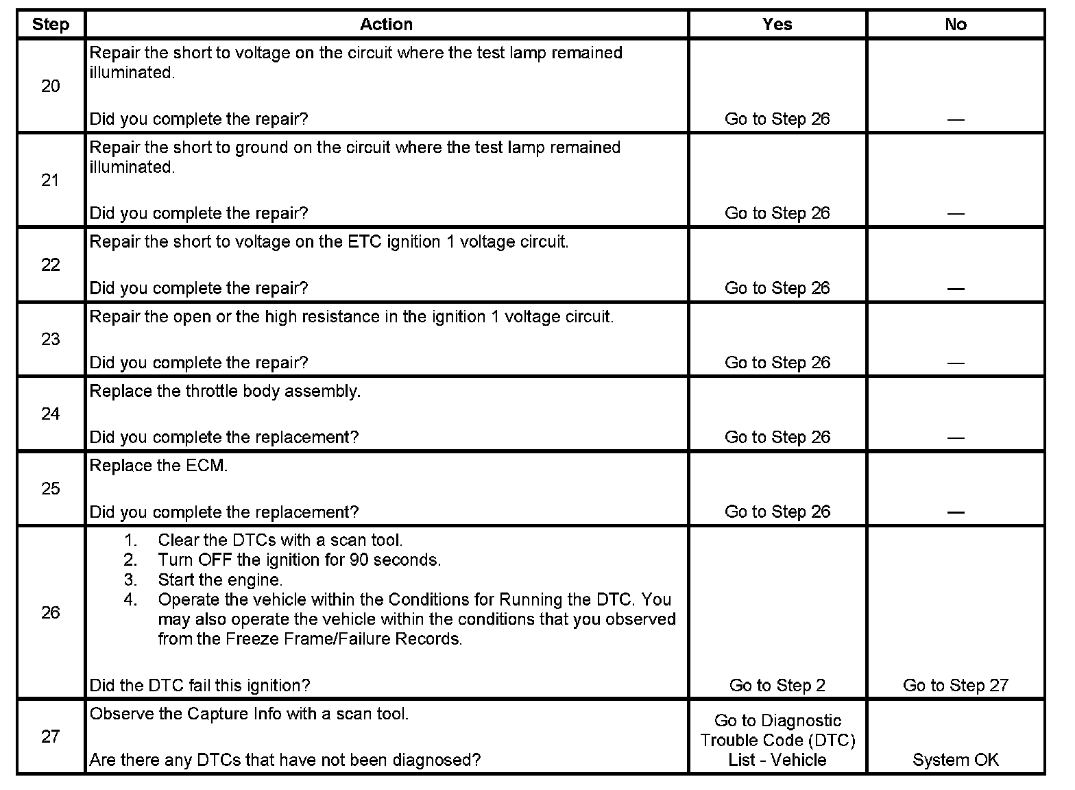 - A current DTC, Last Test Failed, clears when the diagnostic runs and passes.