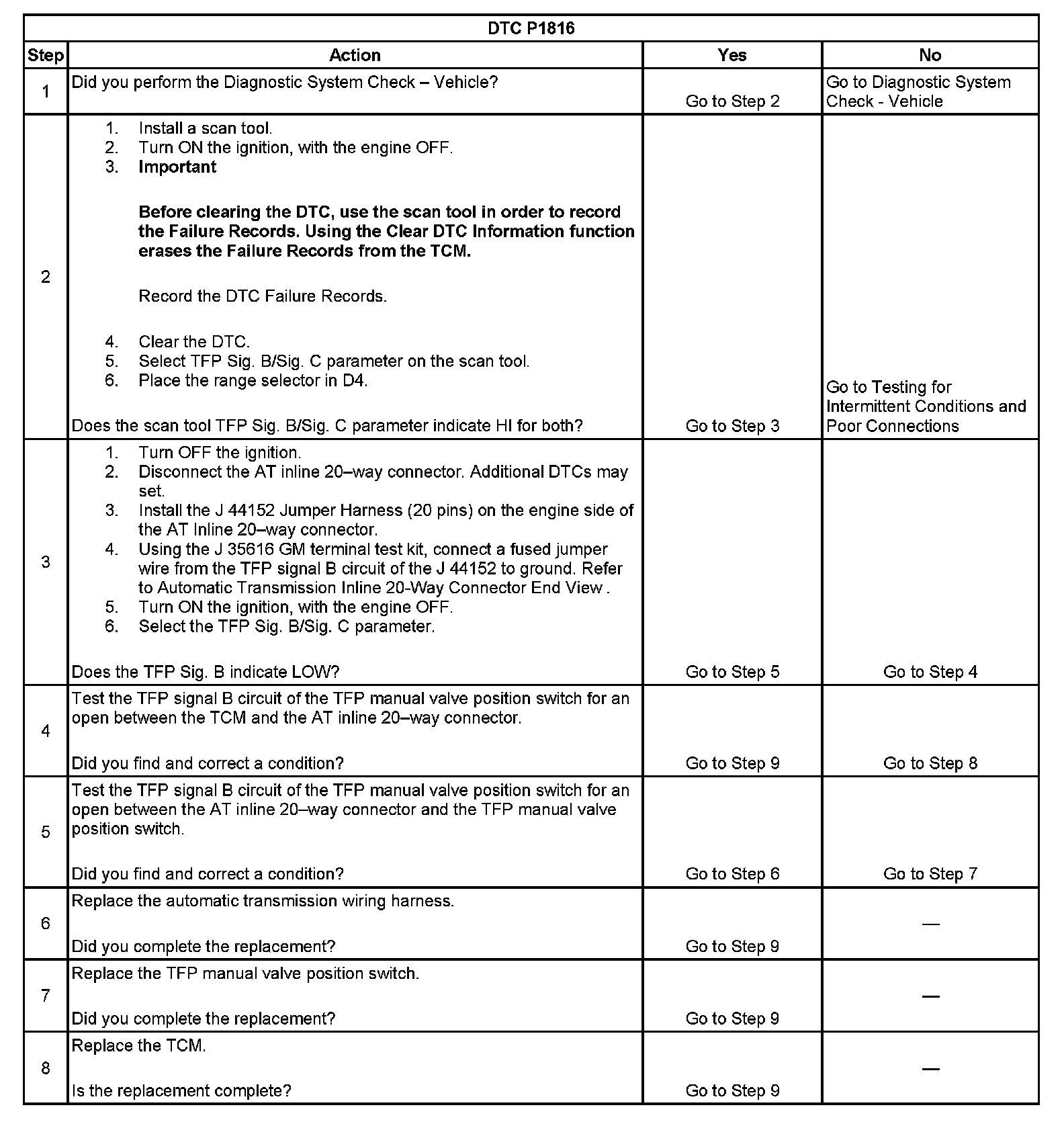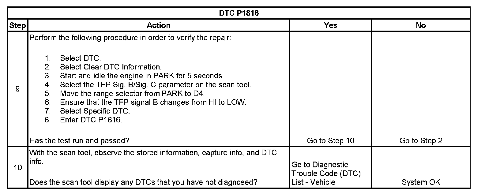 ^ The TCM stores DTC P1816 in TCM history during the second consecutive trip in which the Conditions for Setting the DTC are met.