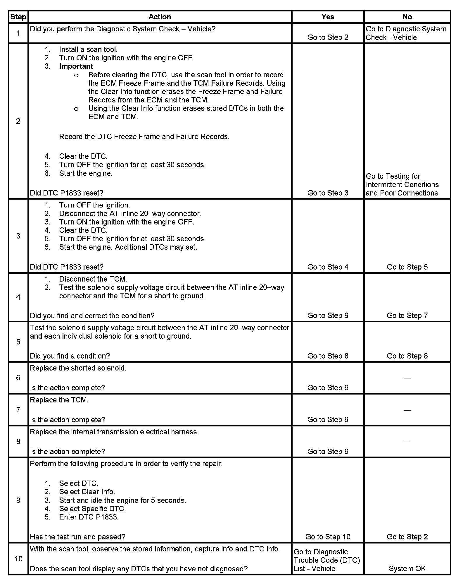 ^ The TCM stores DTC P1833 in TCM history.