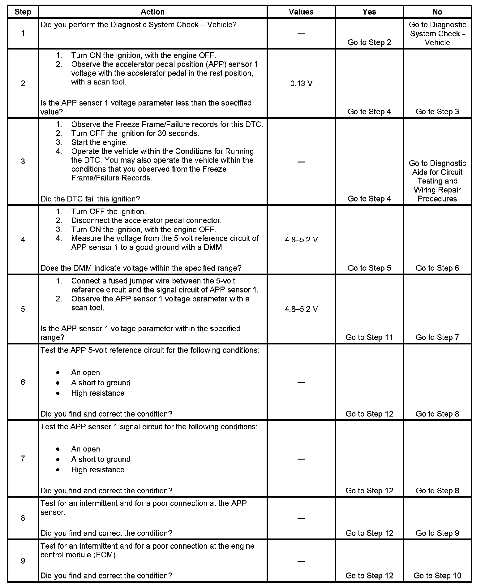 DTC P2122 Accelerator Pedal Position (APP) Sensor 1 Circuit Low Voltage