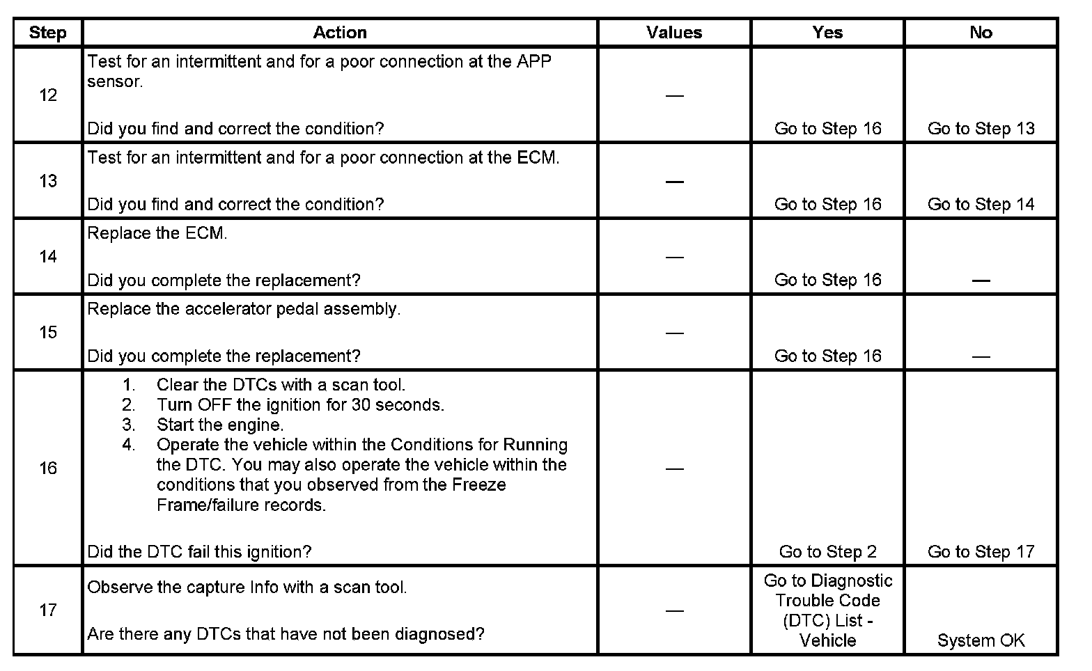 - A current DTC, Last Test Failed, clears when the diagnostic runs and passes.