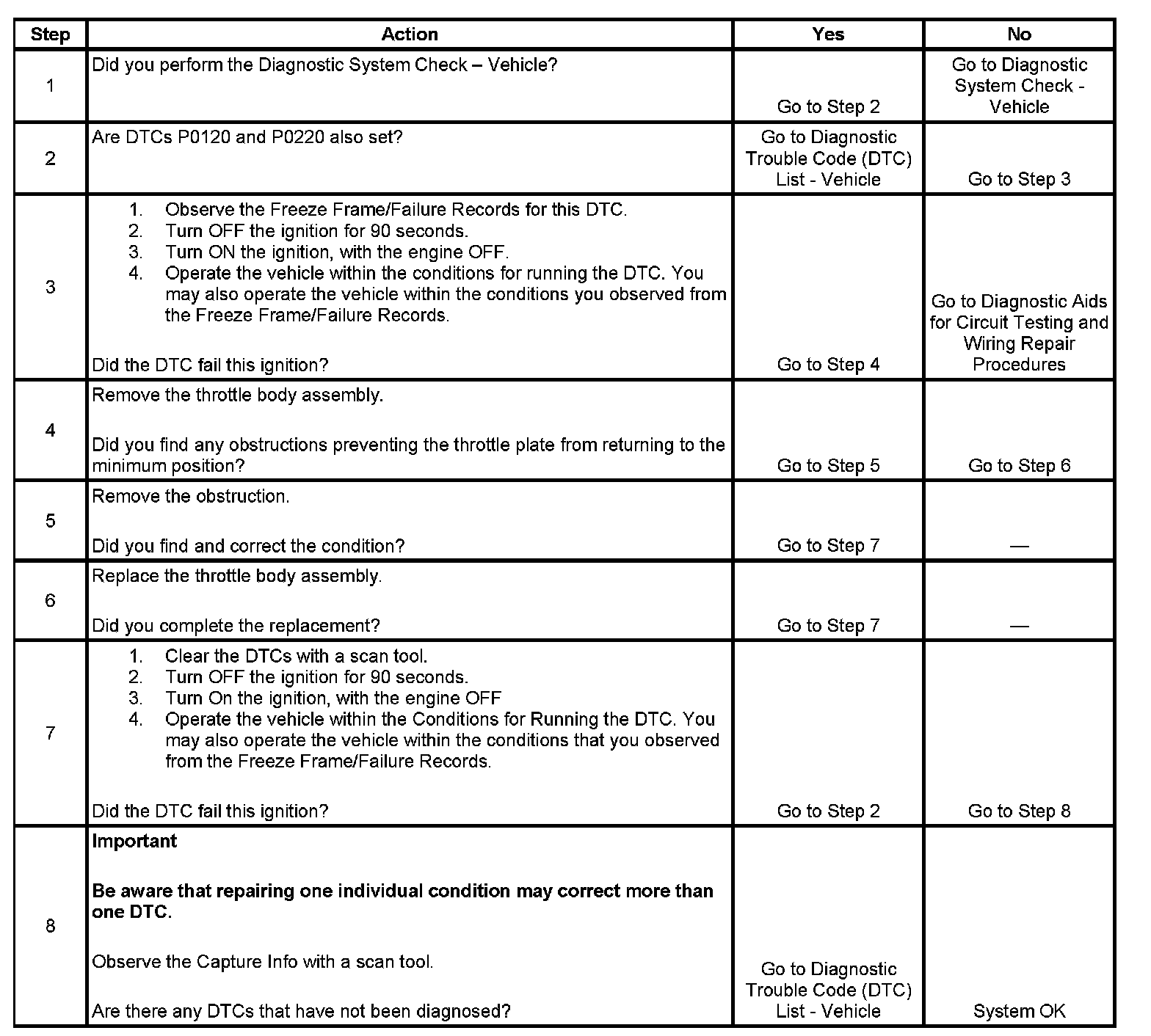 The engine control module (ECM) determines the minimum throttle position each time the ignition is turned on. In order to learn this position, the ECM moves the throttle plate to the closed position. If the ECM determines the throttle plate is not moving to the fully closed position during this learn procedure, DTC P2176 will set.