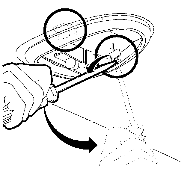 1. Using a small, flat-bladed tool, pry at the forward edge of the reading lamp cover to disengage the forward clips. Slide the cover forward to disengage the rearward hooks.