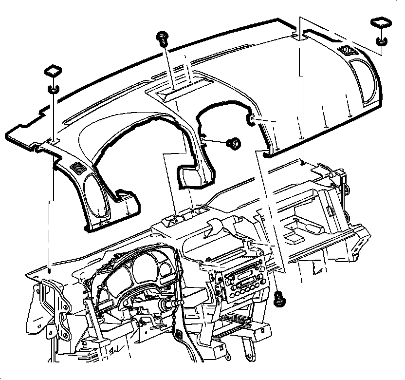 22. Remove the bolts from the I/P upper trim panel.