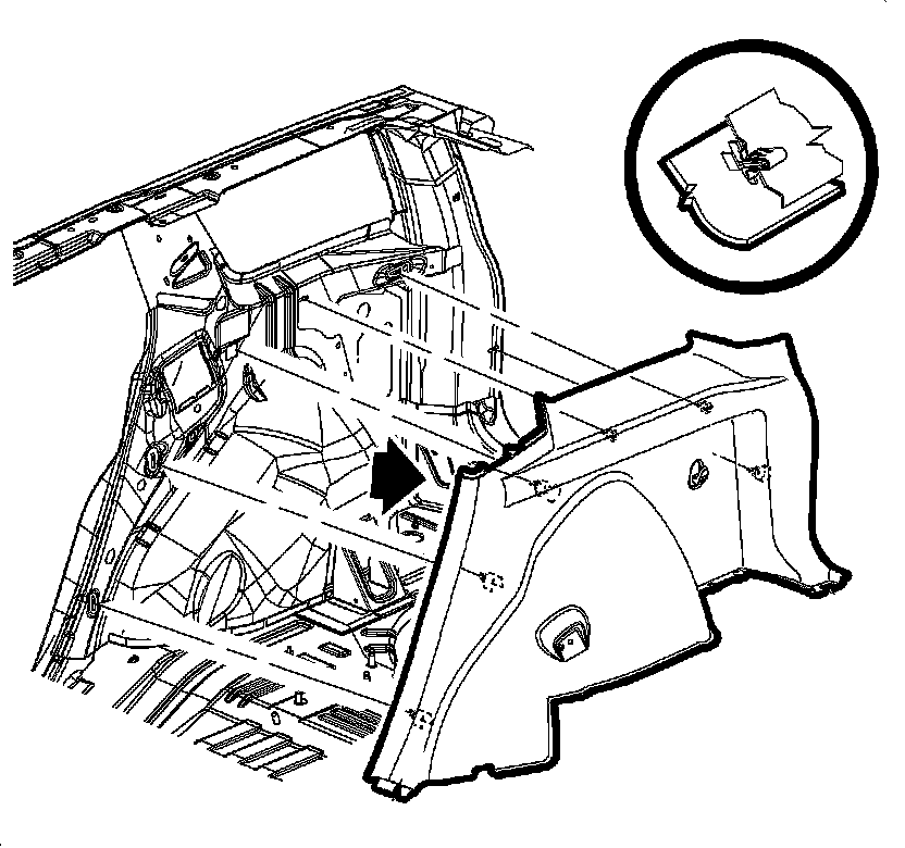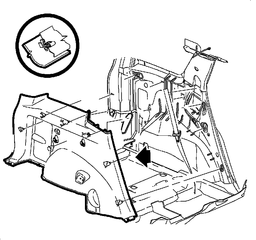 8. Install the carpet retainer. Refer to Carpet Retainer Replacement - Rear (Service and Repair).