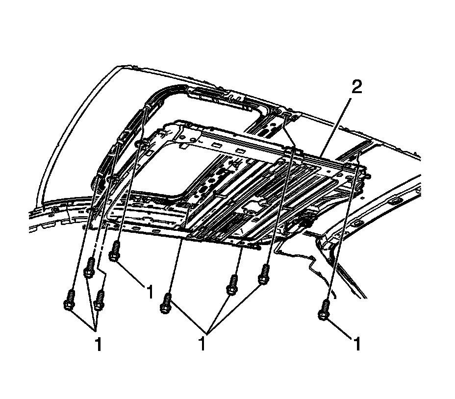 1. Remove the headliner. Refer to Headliner Replacement (Service and Repair) in Interior Trim.
