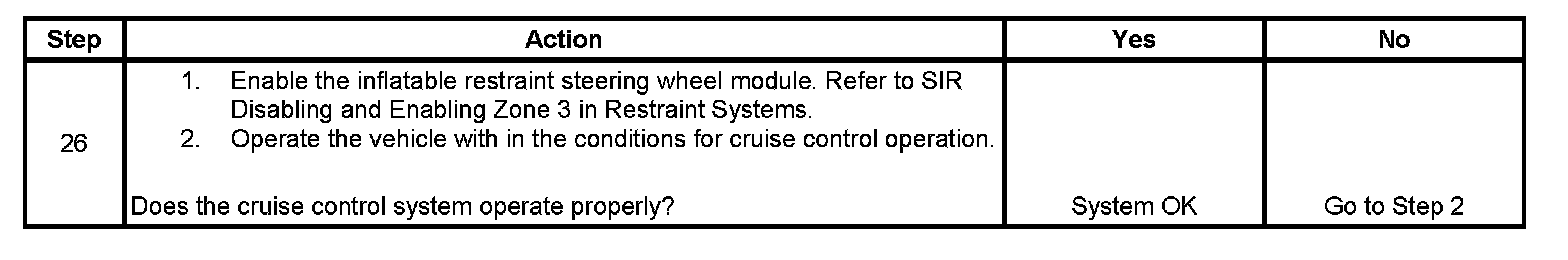 Disable the inflatable restraint steering wheel module when performing this diagnostic table. Refer to SIR Disabling and Enabling Zone 3 in Restraint Systems.