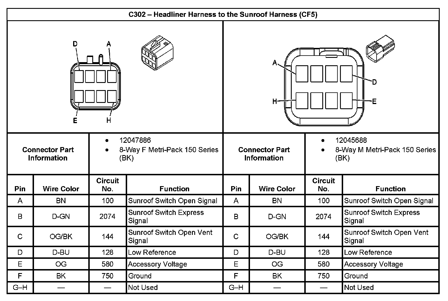 C302 - Headliner Harness To The Sunroof Harness (With RPO Code CF5):