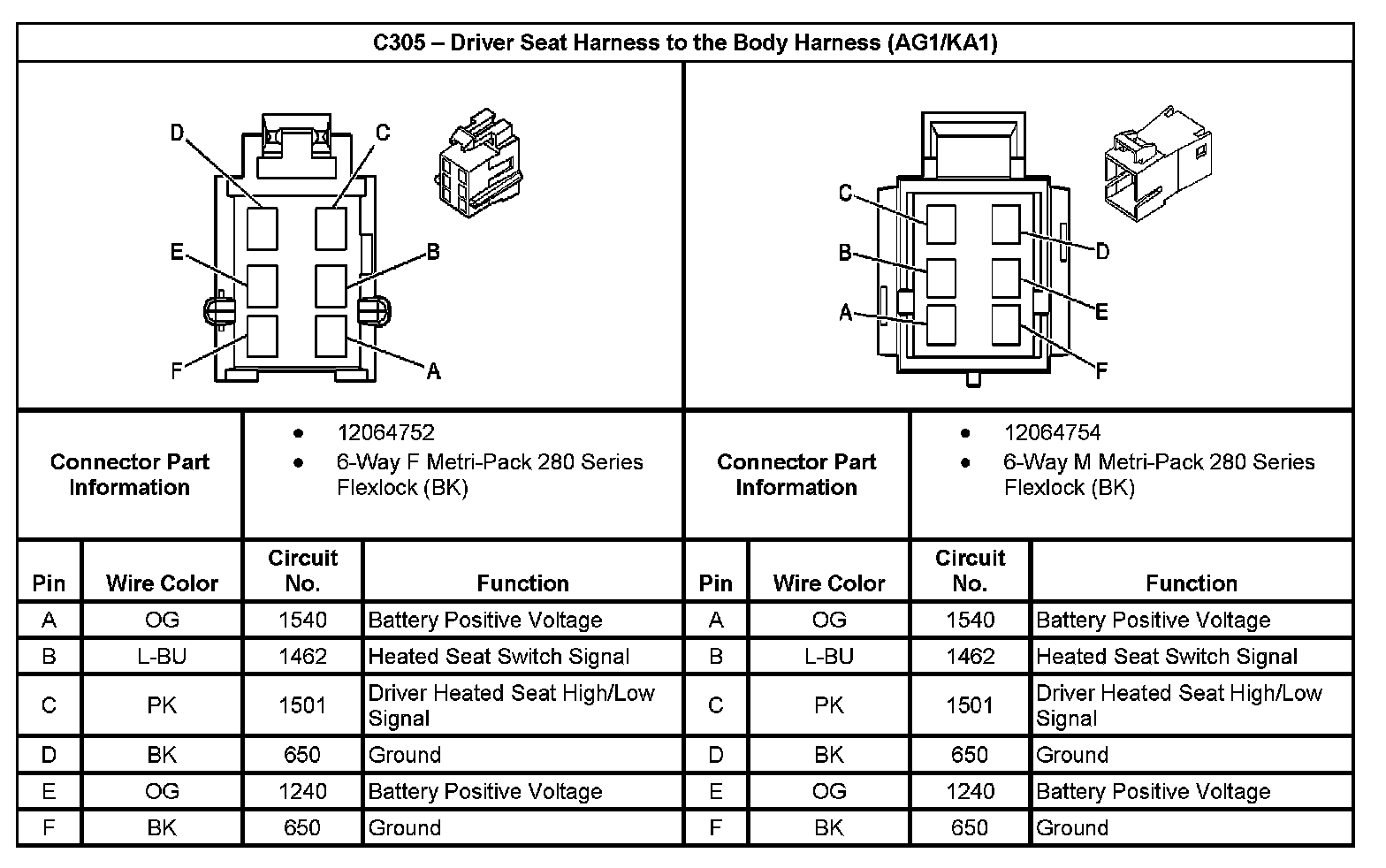 C305 - Driver Seat Harness To The Body Harness (With RPO Code AG1/KA1):