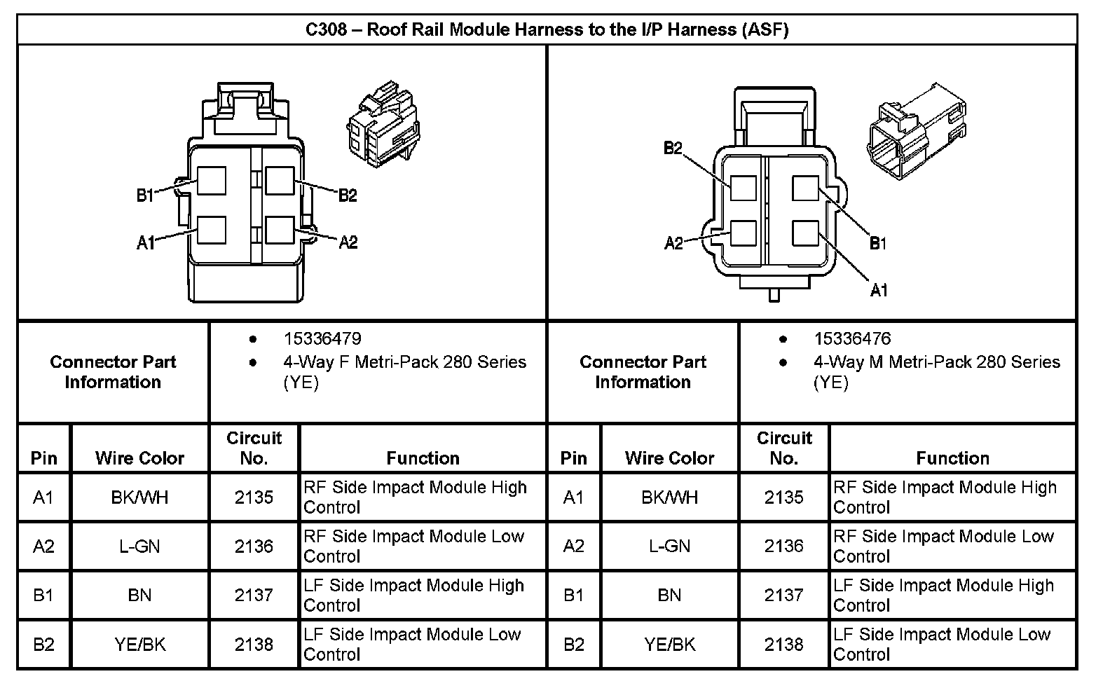 C308 - Roof Rail Module Harness To The I/P Harness (With RPO Code ASF):