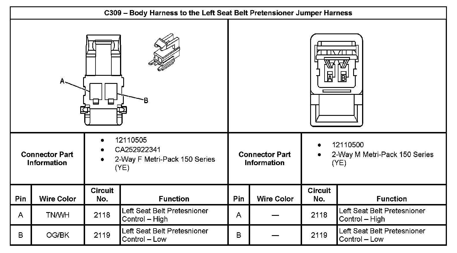 C309 - Body Harness To The Left Seat Belt Pretensioner Jumper Harness: