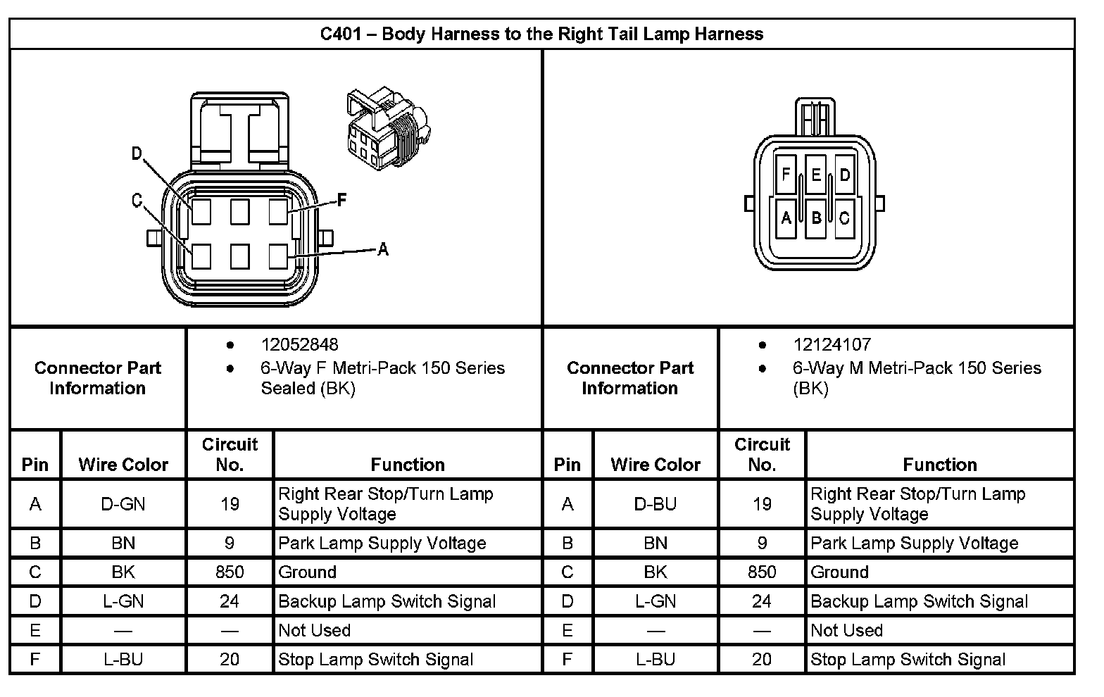 C401 - Body Harness To The Right Tail Lamp Harness: