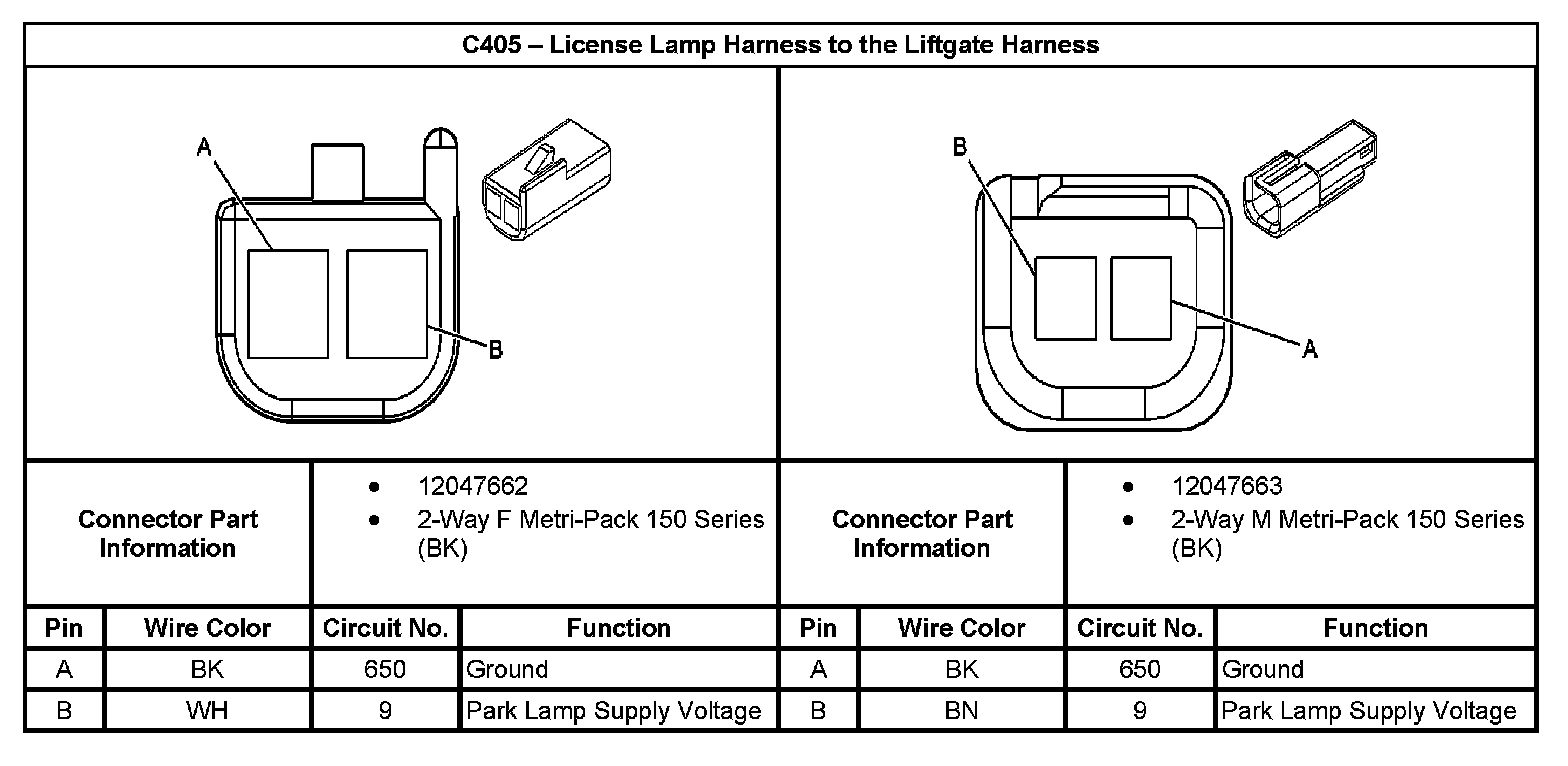 C405 - License Lamp Harness To The Liftgate Harness: