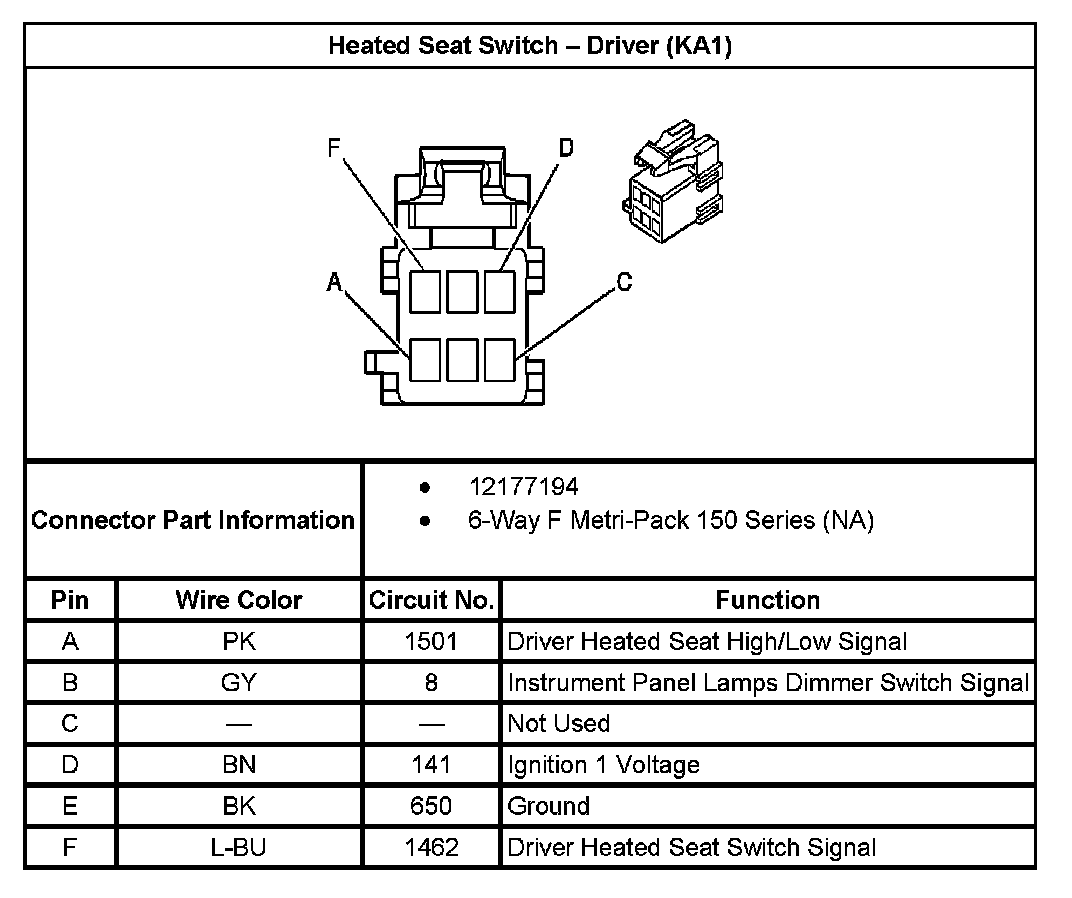 Heated Seat Switch - Driver (With RPO Code KA1):