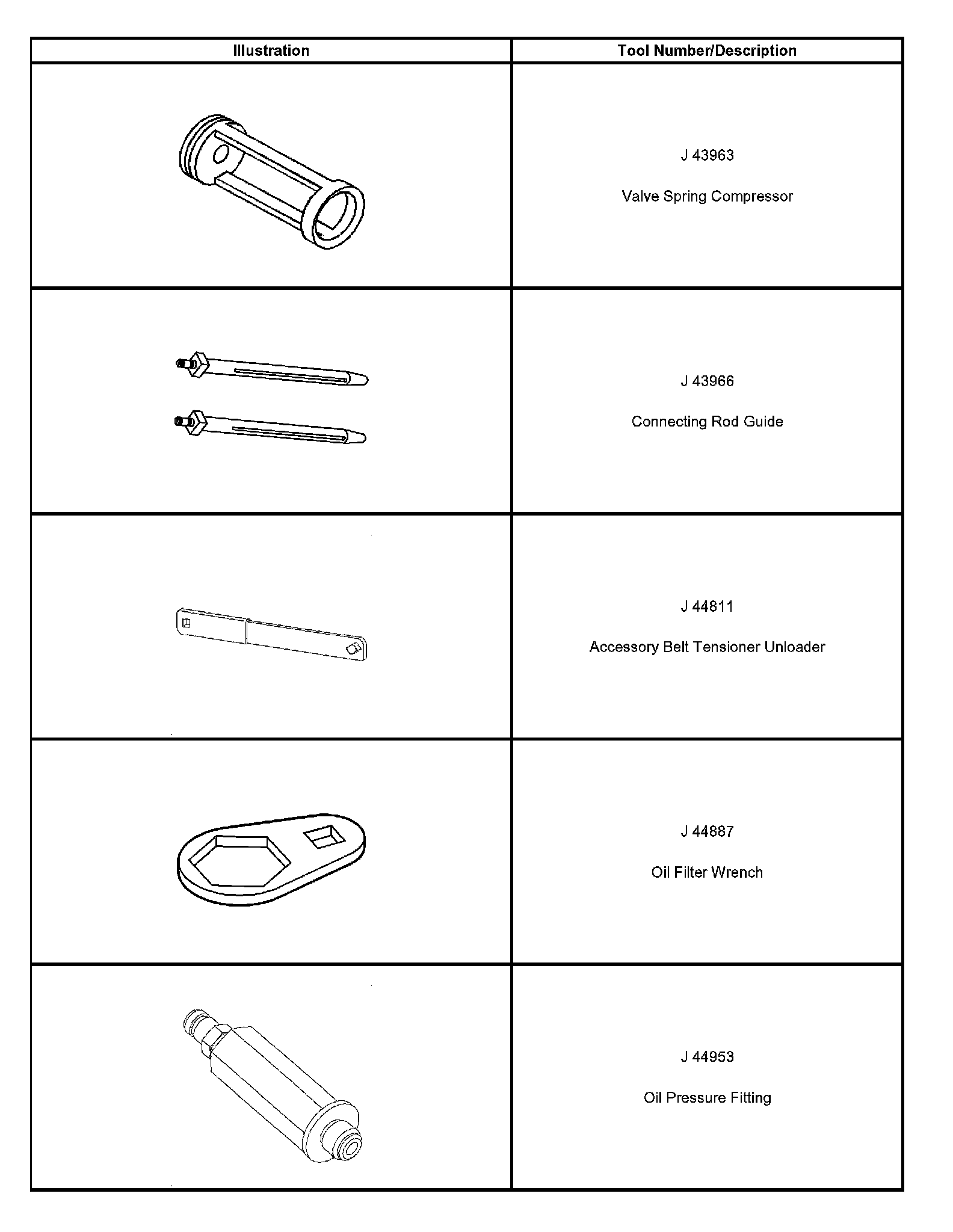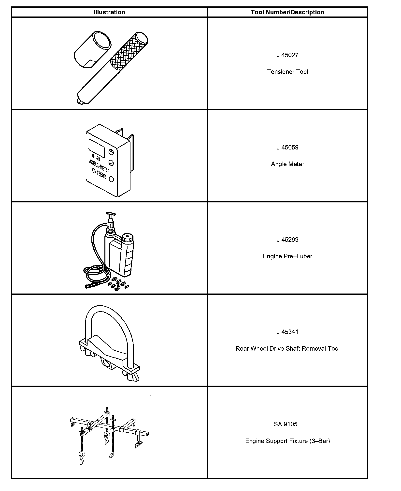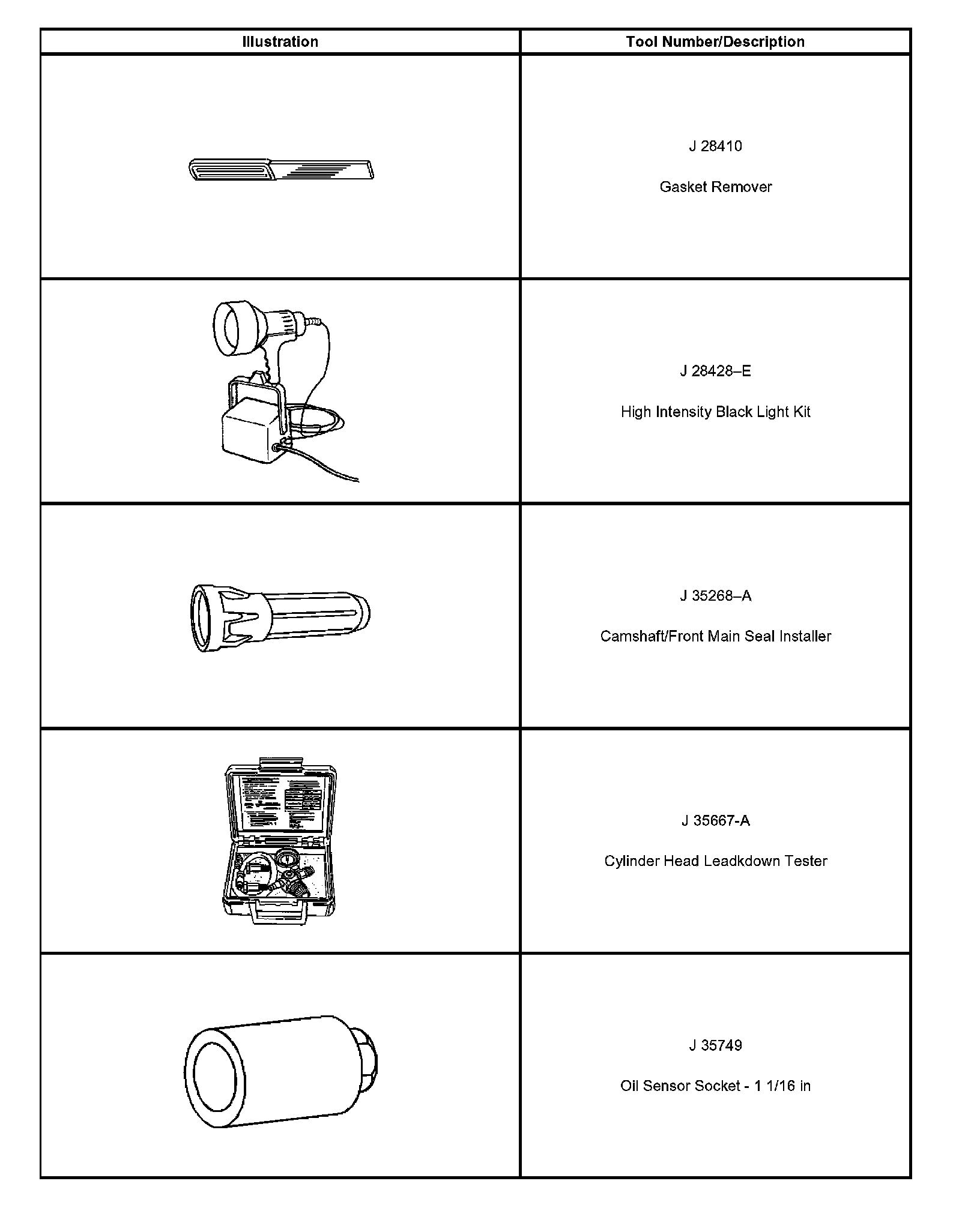 Special tools are listed and illustrated throughout this section with a complete listing at the end of the section. These tools, or their equivalents, are specially designed to quickly and safely accomplish the operations for which they are intended. The use of these special tools will also minimize possible damage to engine components. Some precision measuring tools are required for inspection of certain critical components. Torque wrenches and a torque angle meter are necessary for the proper tightening of various fasteners.