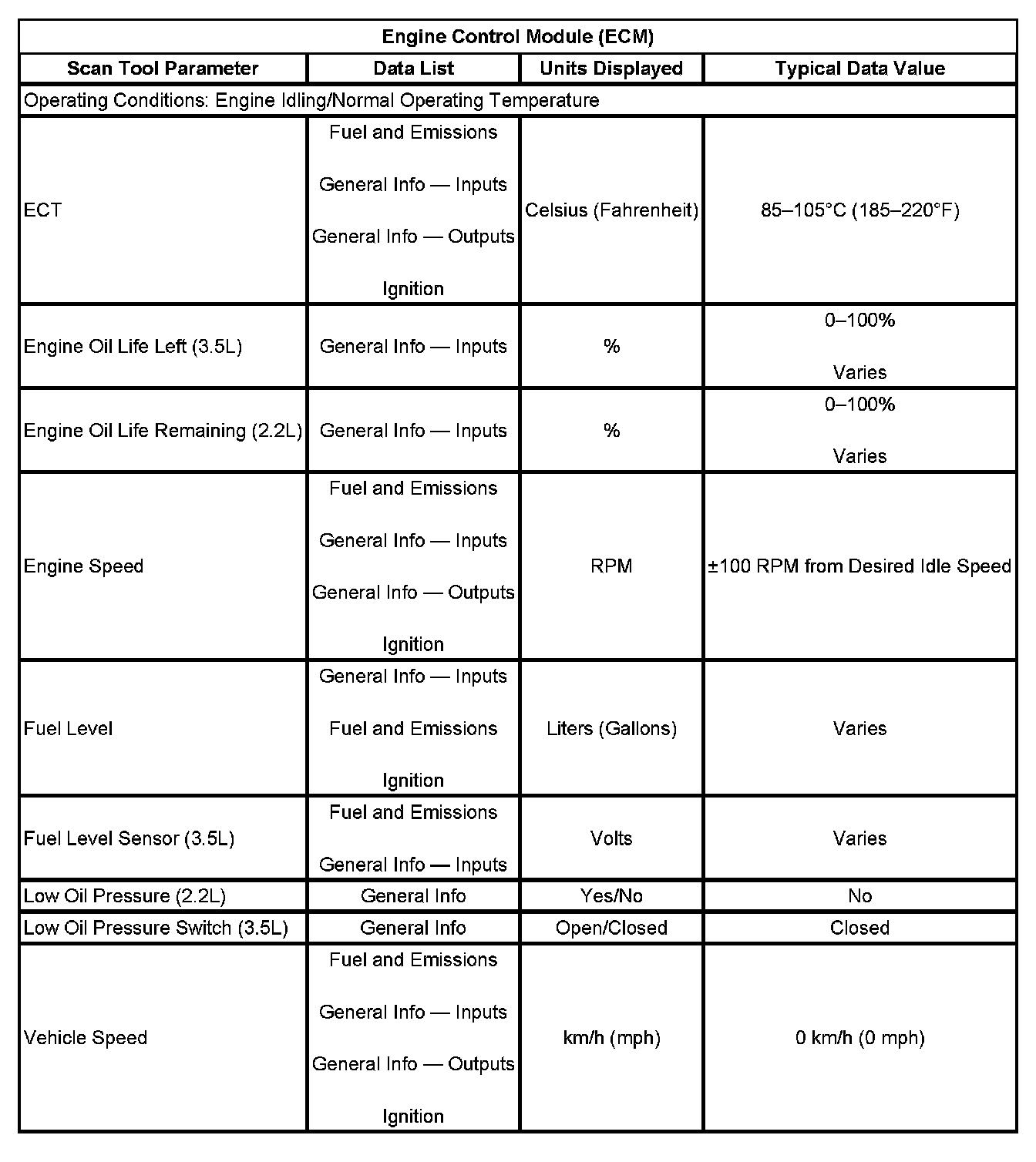 Scan Tool Data List