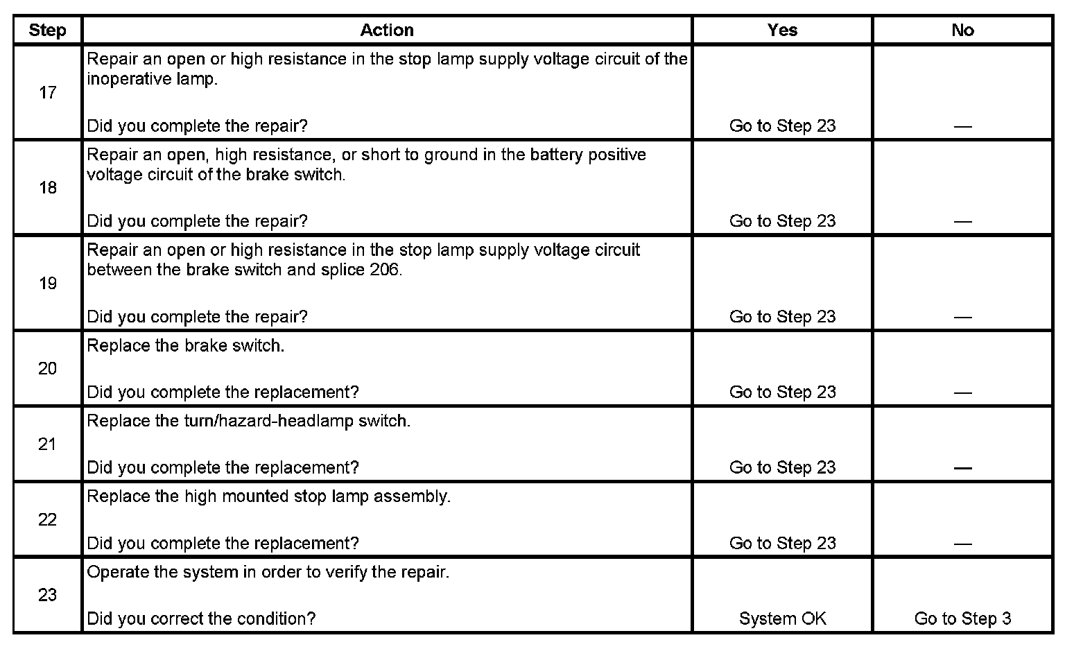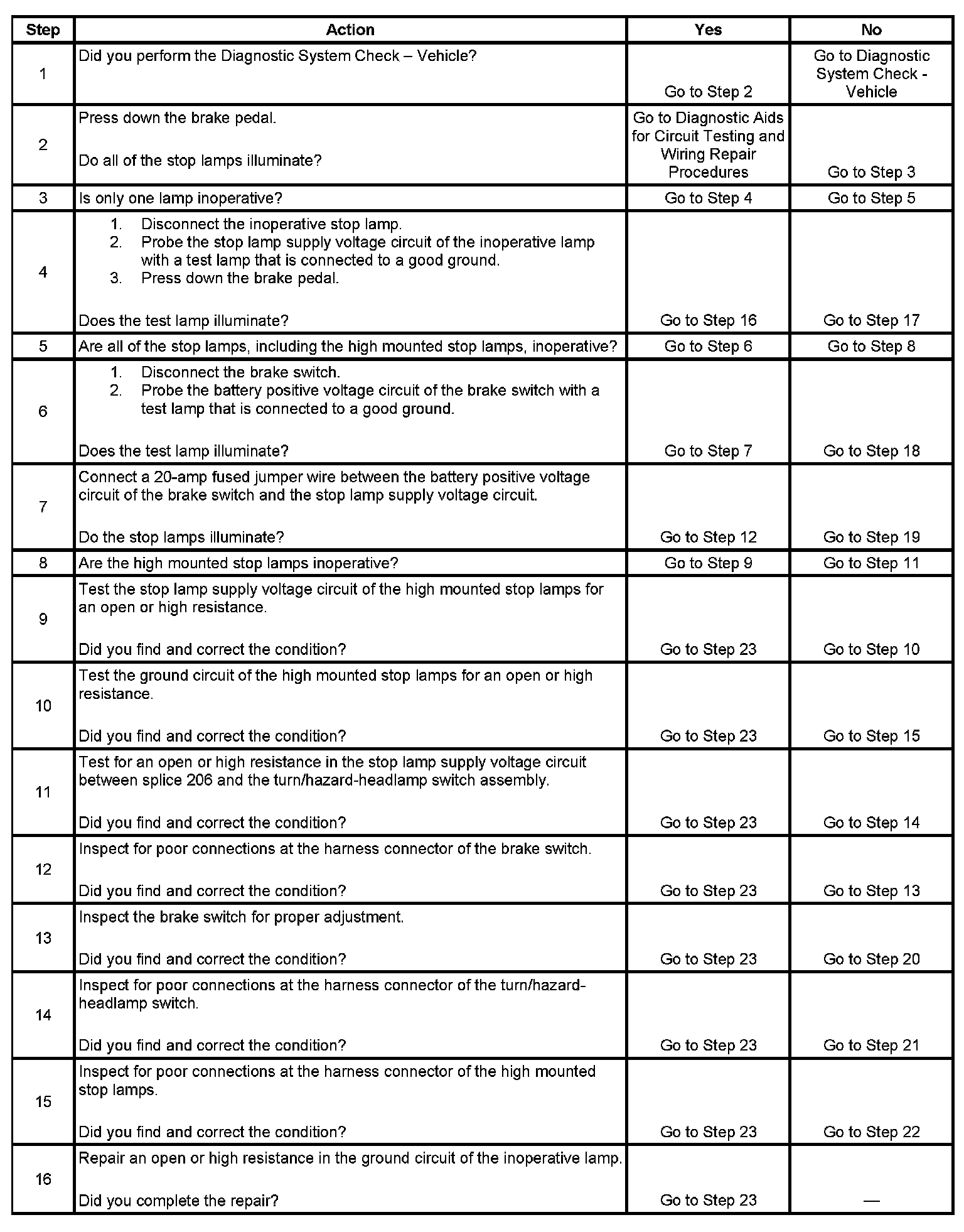 Stop Lamps Inoperative
