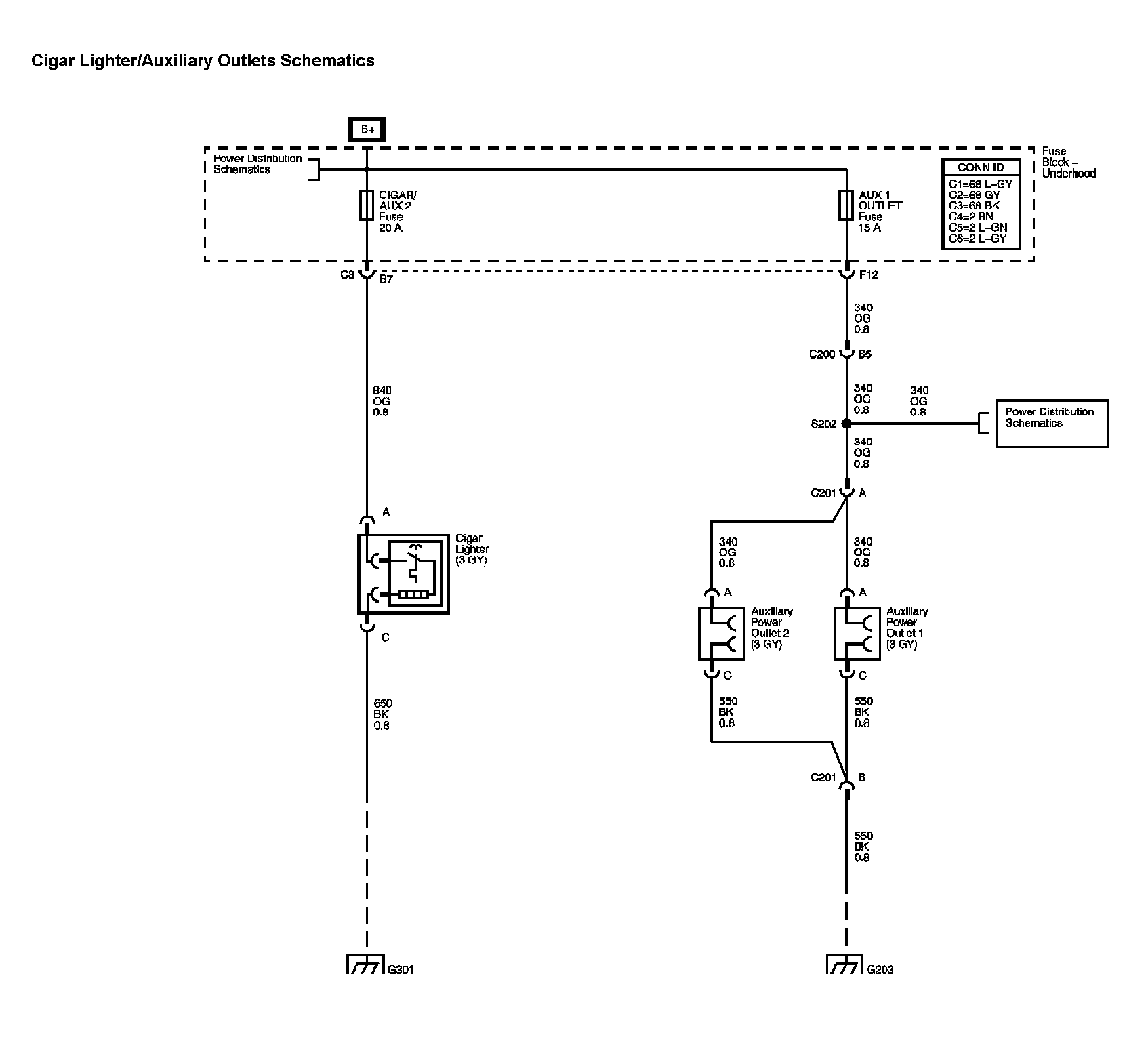 Cigar Lighter/Auxiliary Outlets Diagram: