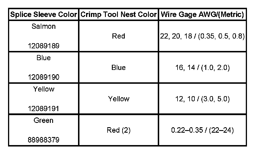 5. Select the proper DuraSeal splice sleeve according to the wire size. Refer to the table provided.