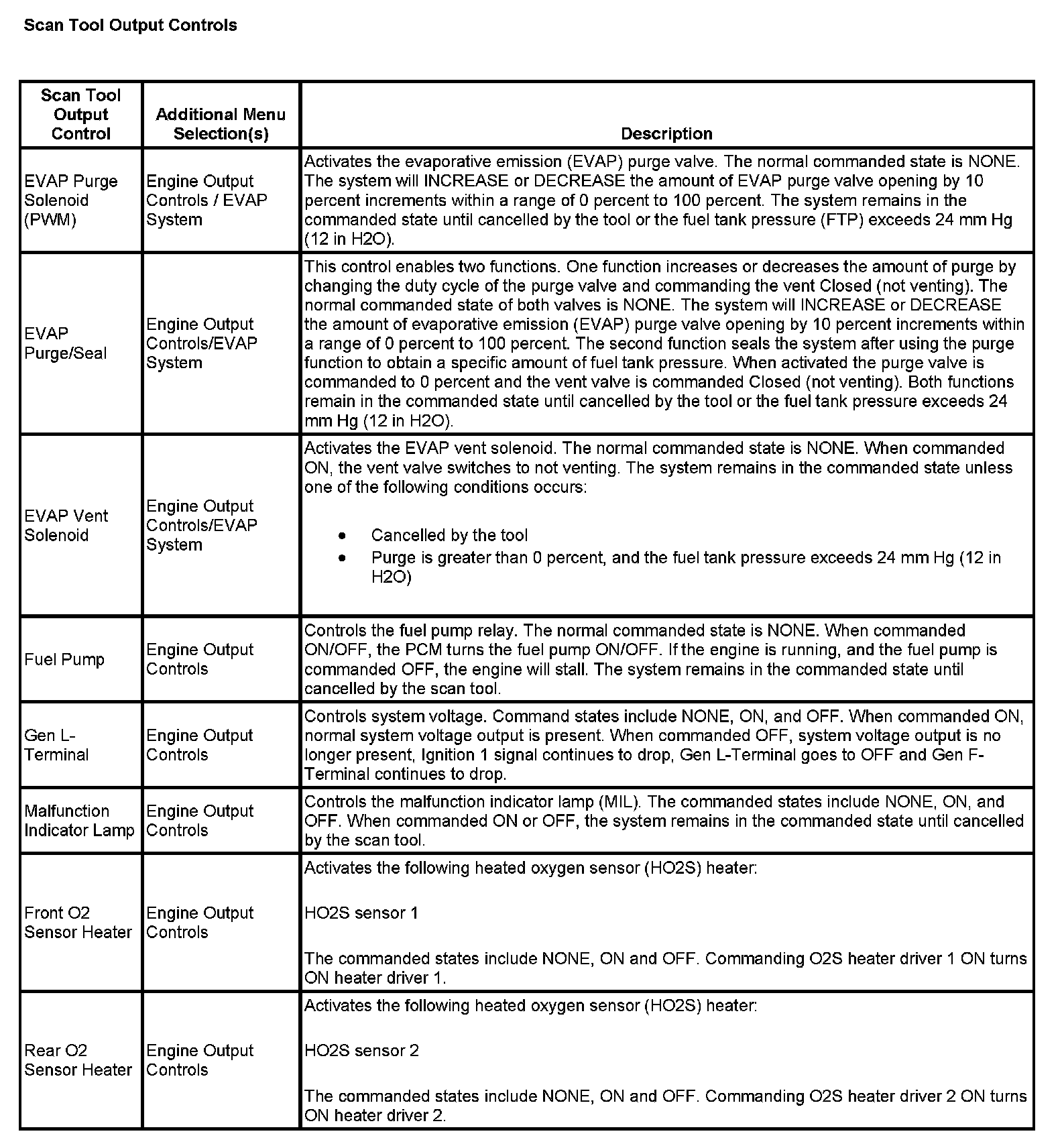 Scan Tool Output Controls:
