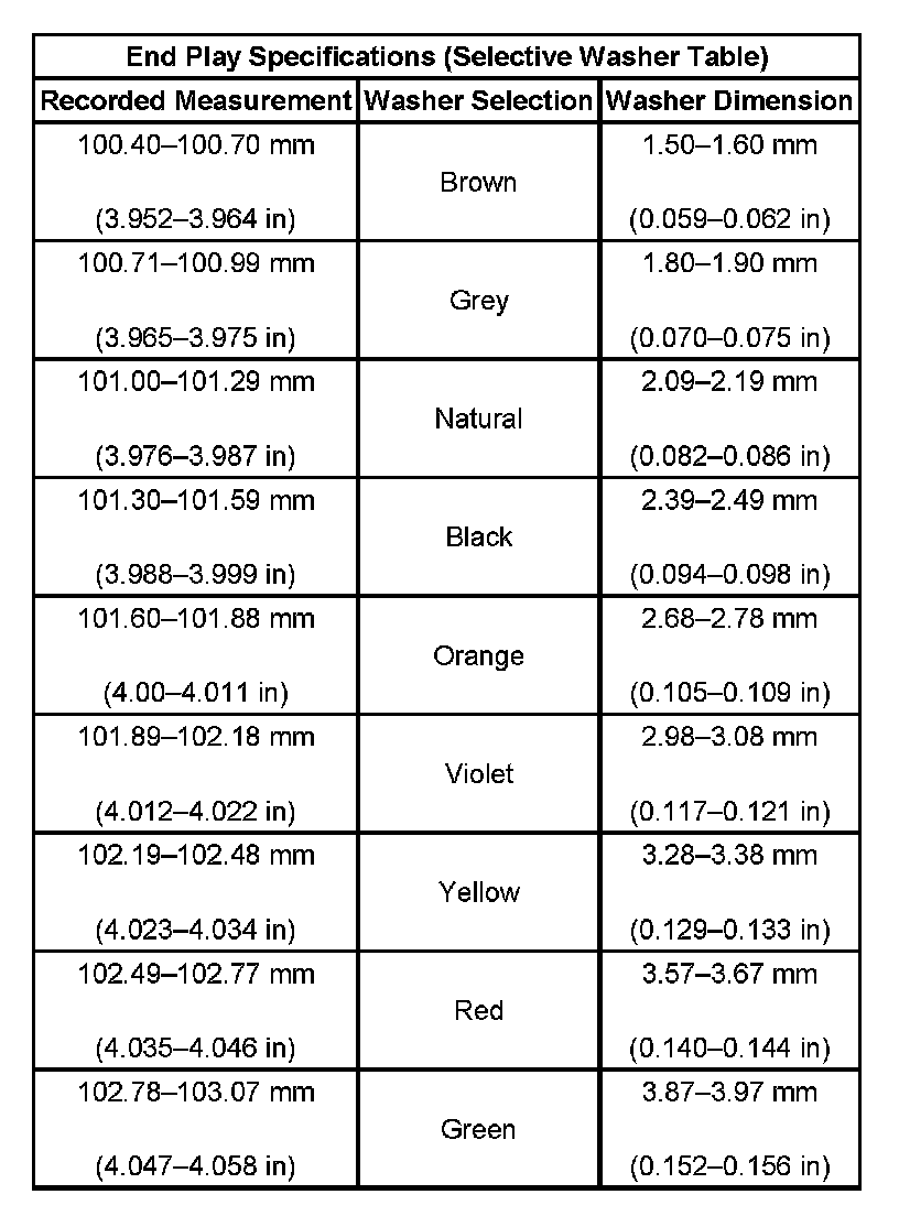 End Play Specifications (Selective Washer Table):