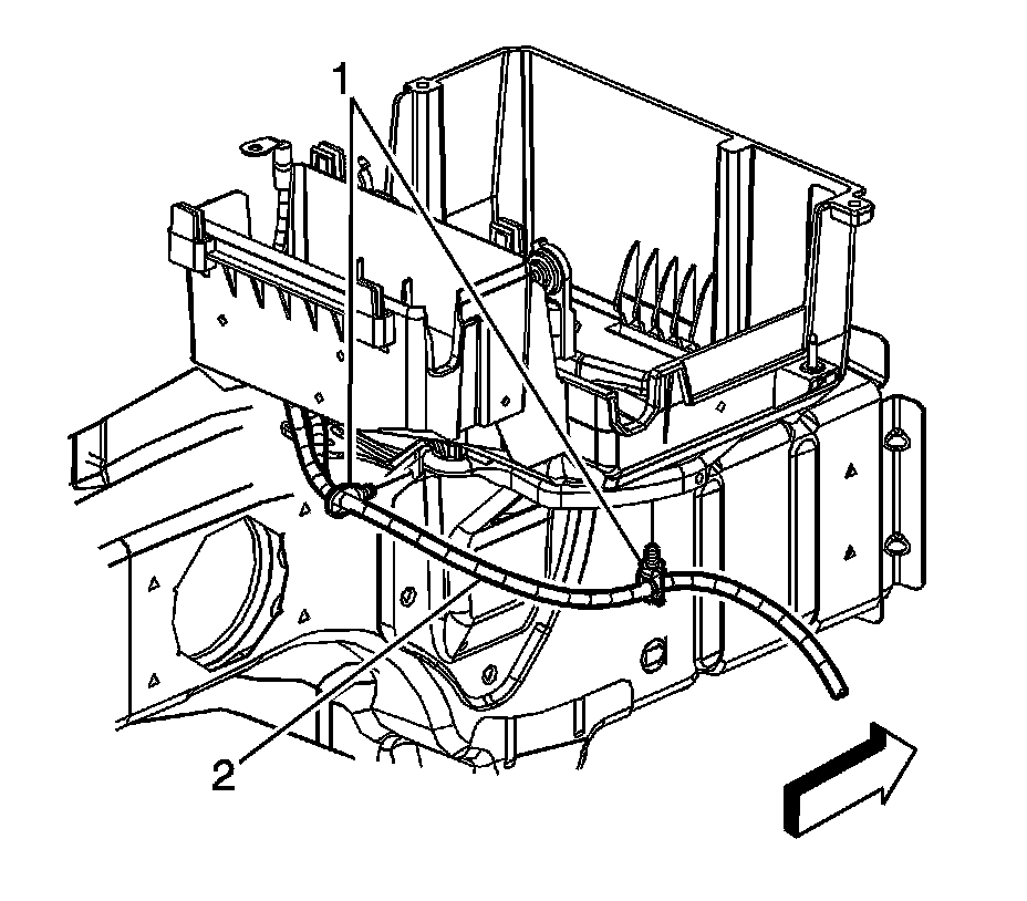 2. Disconnect the battery cable retainers (1) from the battery tray.