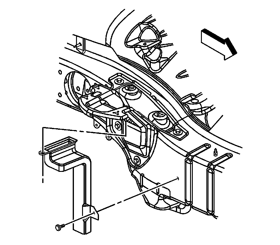IMPORTANT: Ensure that the outlet duct is properly aligned with the battery tray and that it is securely fastened to the rail.