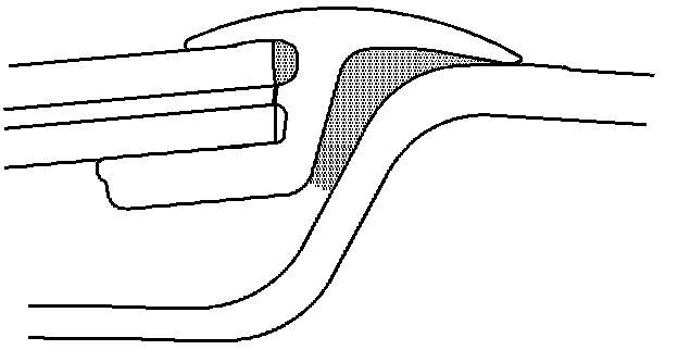 9. On both driver's and passenger's side, fill the areas shaded in the illustration above with urethane adhesive approximately 10 mm (0.4 in) deep.
