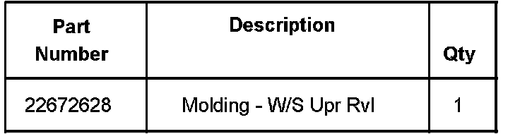 Wind Rush or Rustle Noise from Windshield Area at Speeds Above 48-56 km/h (30-35 mph) (Replace Windshield Upper Reveal Molding)