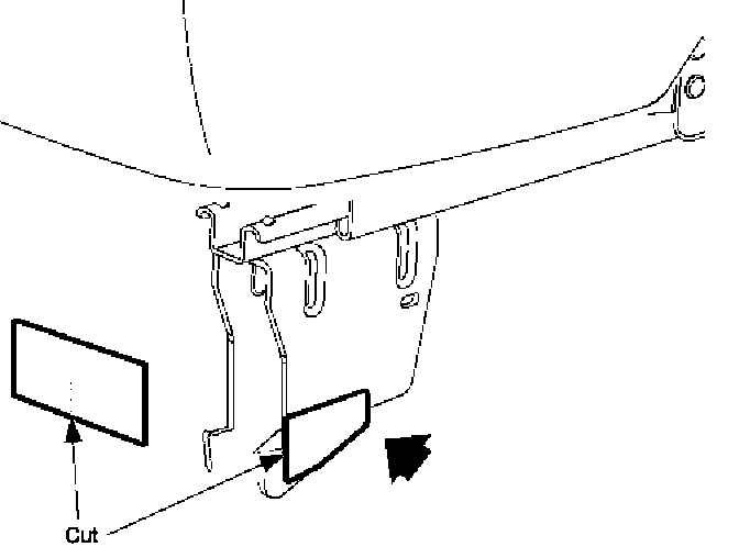6. Slide cut opening of tape down over the horizontal edge of the seat hook until the top of cut opening rests on the horizontal edge of the seat hook. Push tape to rear until the crease in the tape contacts the vertical portion of the seat hook. Secure both halves of the tape to the seat hook.