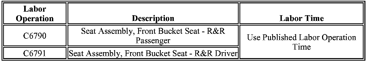 1. Remove the affected front seat from the vehicle. Refer to "Seat Replacement - Front Bucket" in SI or the appropriate model year Service Manual.