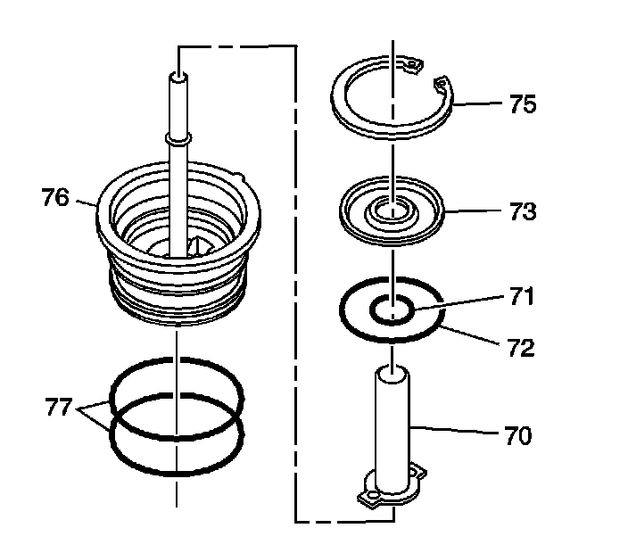 7. Inspect, clean, and replace the components as needed. The coast clutch apply fluid pipe (70) and the fluid feed pipe guide plate (73) are not serviced separately.