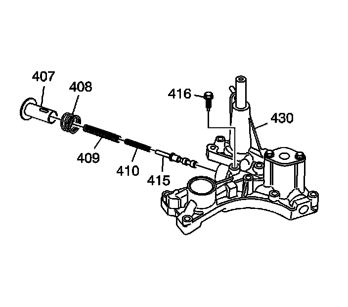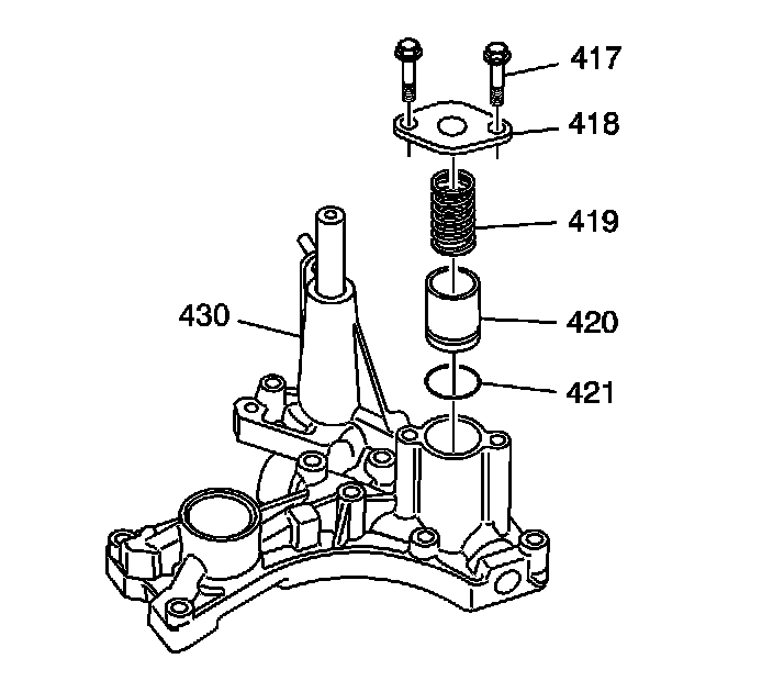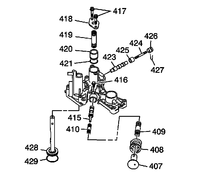 1. Hold the regulator spring cap (407) in place and remove the pressure regulator valve spring cap guide bolt (416).