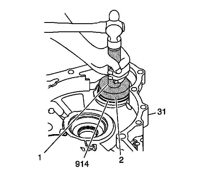 2. Using DT 46415 (2) and EN 46342 (1), install the transfer case input gear bearing (914) until it bottoms out in the transmission case (31).