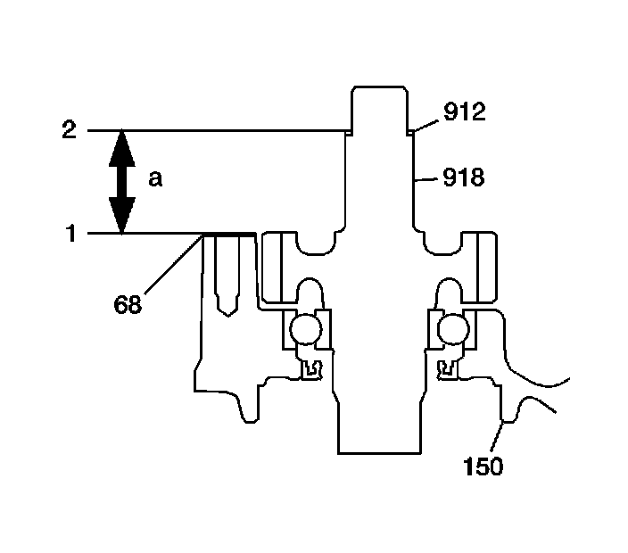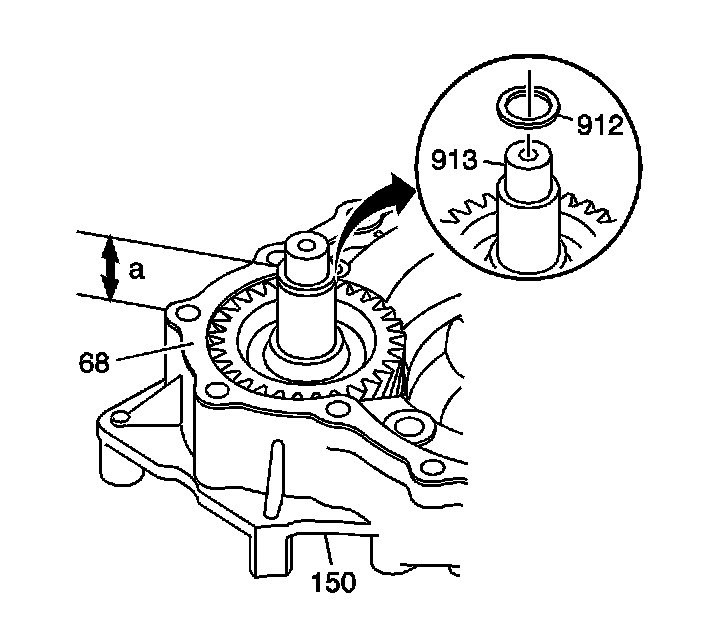 The transfer case input gear installed height measurement (a) can be changed by replacing the transfer case driven gear with shaft, 28.5 mm selective shim (912) as needed.