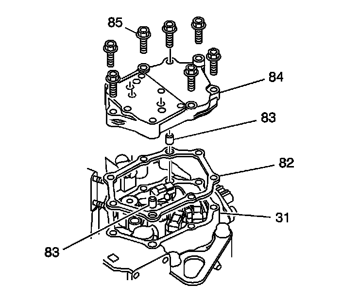 1. Install two 8 x 14 mm clutch pressure control (CPC) solenoid manifold locating pins (83) into the transmission case (31).