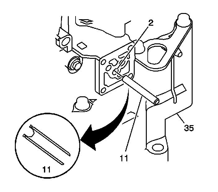 1. Install a 8 x 53 mm TCC apply pressure control solenoid fluid feed passage tube (11) with the filter end facing the transmission case hole (2).